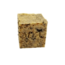 Savon aux cosses de Blé Noir exfoliantes. HE de Patchouli et Cèdre (sans allergènes).