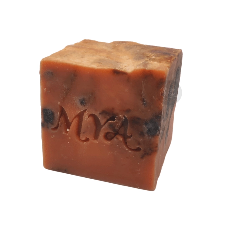 INCI : Sodium Sunflowerseedate*, Sodium Cocoate*, Sodium Rapeseedate*°, Sodium Shea Butterate*, Aqua, Glycerin, Sodium Cocoabutterate*, Sodium Castorate*, Rosa Damascena Flower Powder* ; Pelargonium Graveloens oil* ; Cymbopogon martini oil *, Kaolin ; Kaolin/Iron oxide ; Cittronellol** ; Geraniol**; Linalool** ; Citral** ; Limonène**